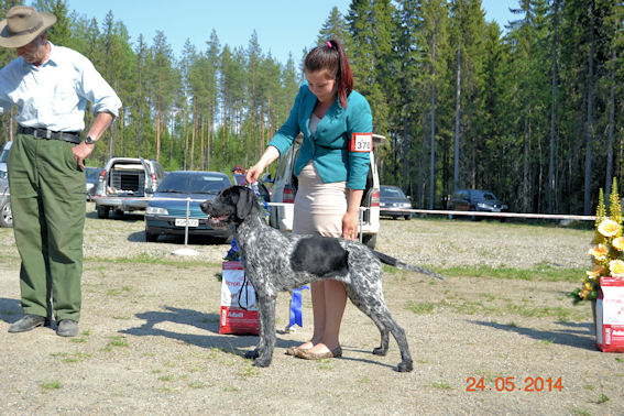 ![]() Ryhmä 7/2. Karkeakarvainen saksanseisoja Pihuparran Nr Rosa, om. Musakka Juha, Hiltulanlahti |