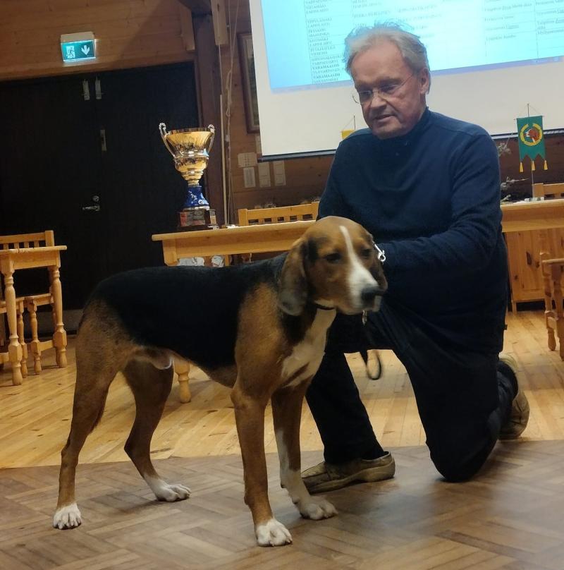 Ruskametsän-kennel, om. Markku Ekonoja on lahjoittanut palkinnon, joka kiertää kokeen parhaalla haukkujalla.